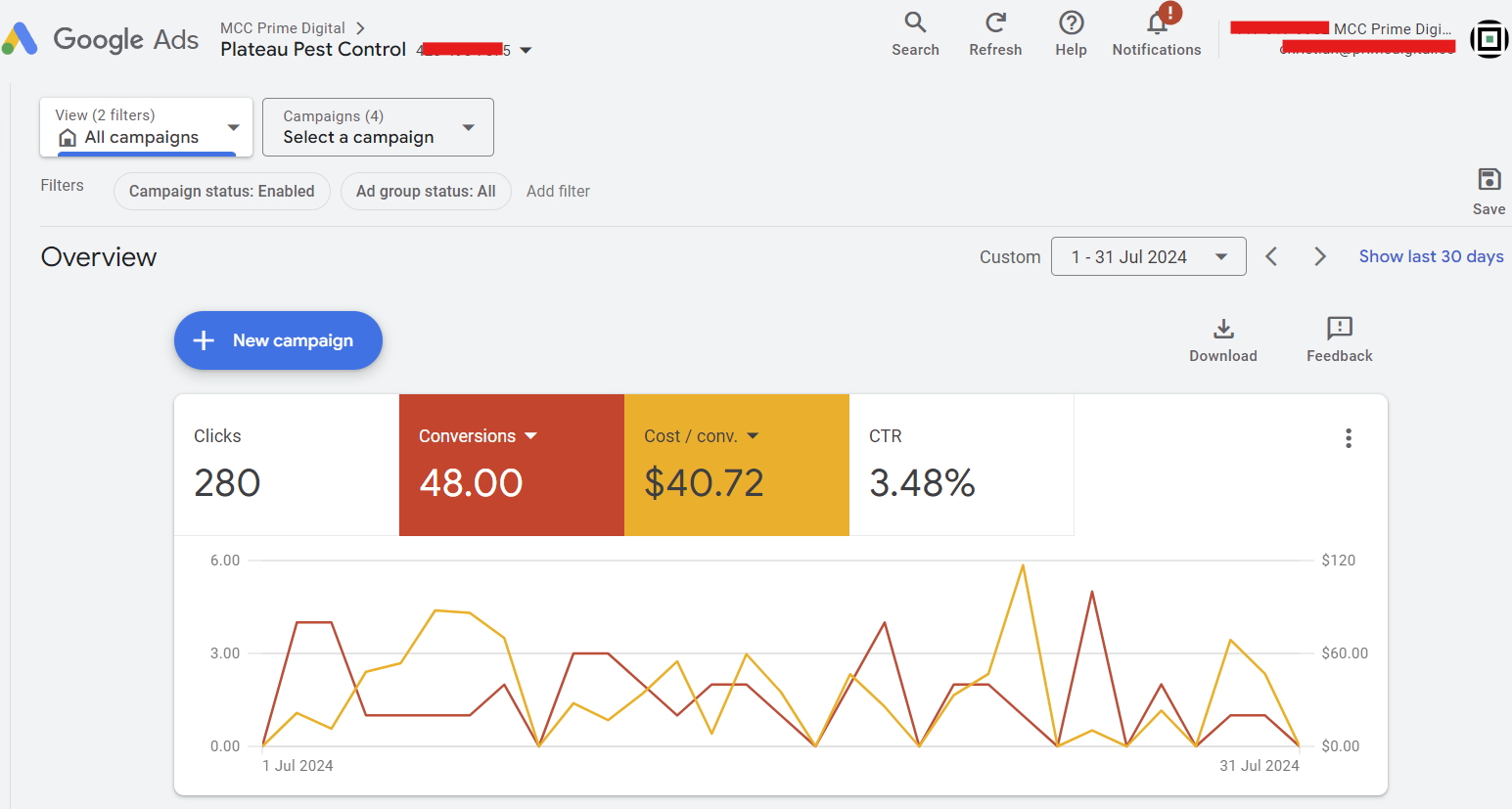 Our agency reconfigured the conversion tracking to ensure accurate measurement of true leads, eliminating duplication and irrelevant actions. We then analyzed and rebuilt their Google Ads campaigns from scratch. By creating highly targeted ad groups focused on specific pests, we refined keyword targeting to reach only those actively searching for pest control services. This approach improved the relevance of the traffic, increased quality scores, and reduced cost per click.